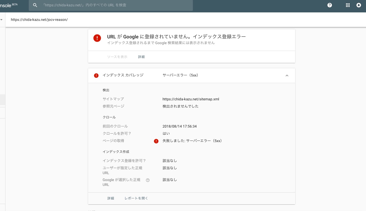 しかし、なんとか解決までこぎつけたのでインデックスエラー「5xx」の解決手順をレポートします。