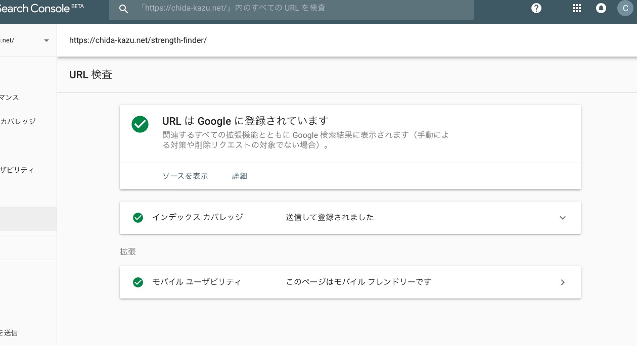 登録して30分ほど間を置き(タイミングによっては半日〜数日かかることもあります)再度URLの検査をします。