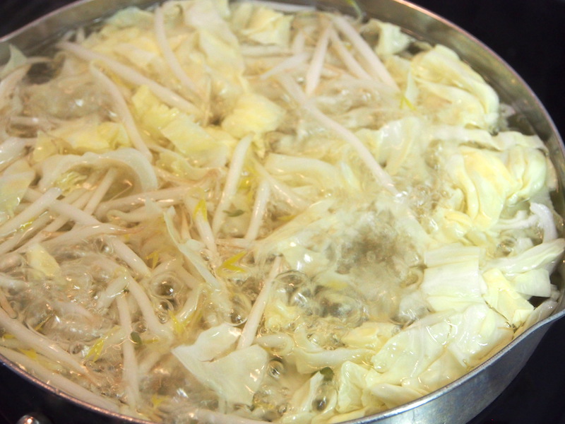 大前提です。モヤシだけより少量でもキャベツが入ると全然違います。