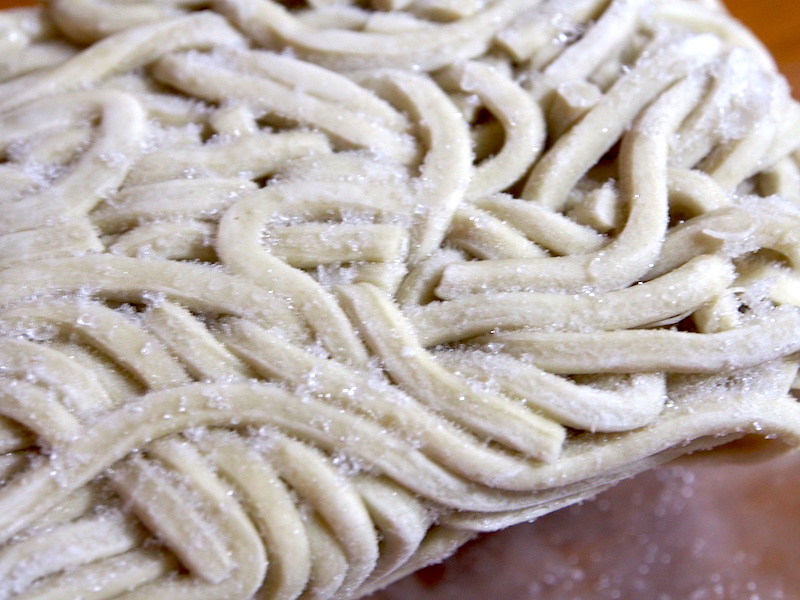 野菜が茹で上がったら、その鍋で麺を茹でます。