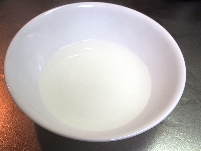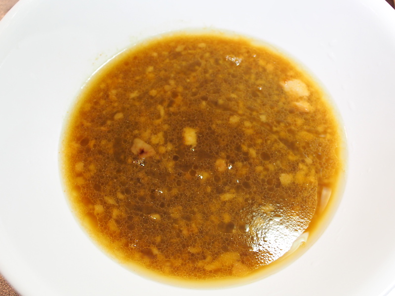 麺が茹で上がる数分前に湯煎していたスープを取り出します。