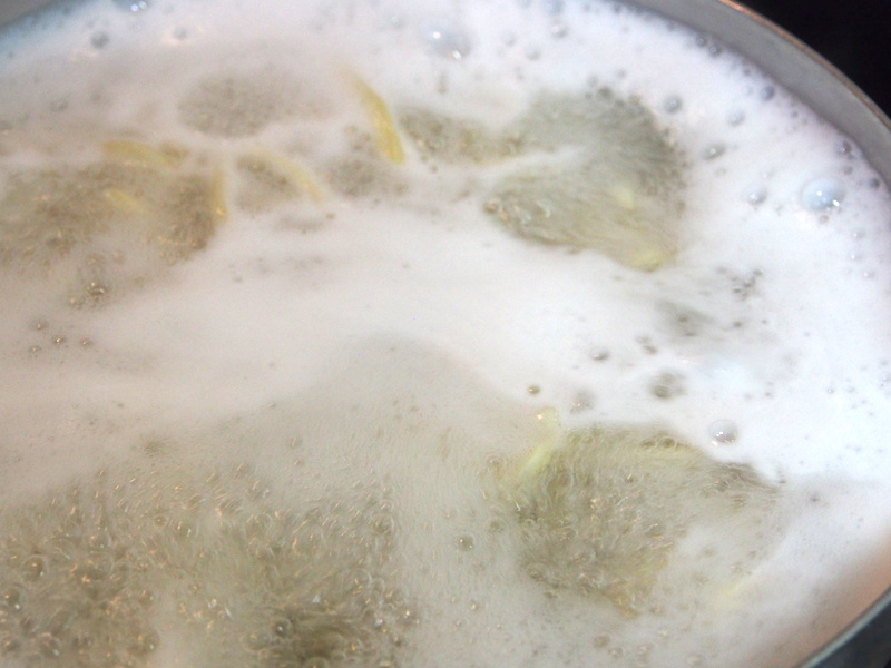 そのまま沸騰しているお湯に入れてこのくらいの火加減を維持します。