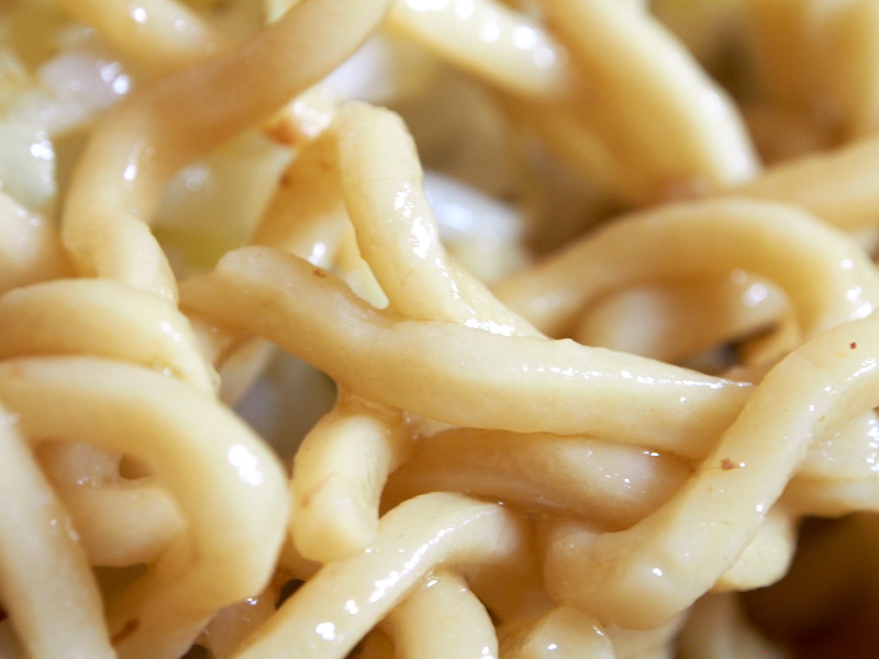 太さは二郎と比較すると細いですが一般的には十分太麺。