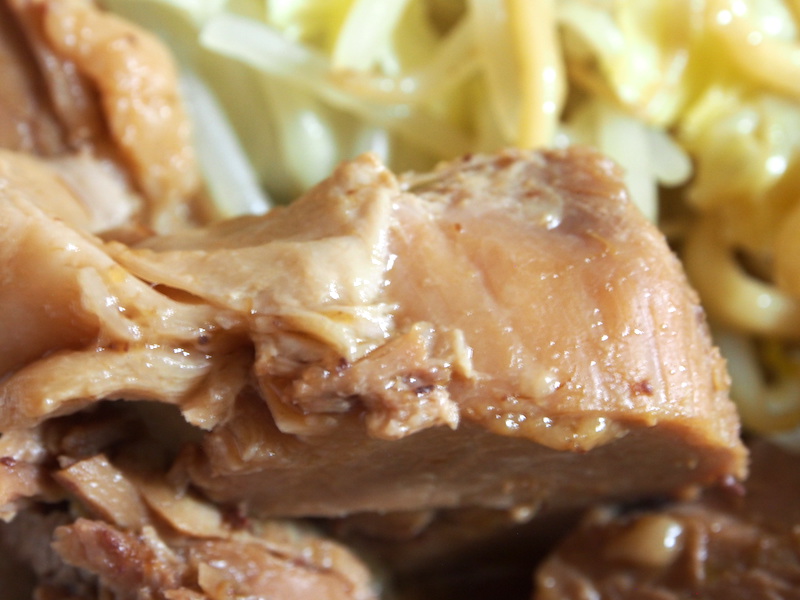煮過ぎると食感がツナっぽくなっちゃいますが、それがまたいいんです。ほぐれたツナっぽい豚を野菜や麺と一緒に頬張るのがいいんです。