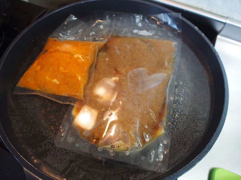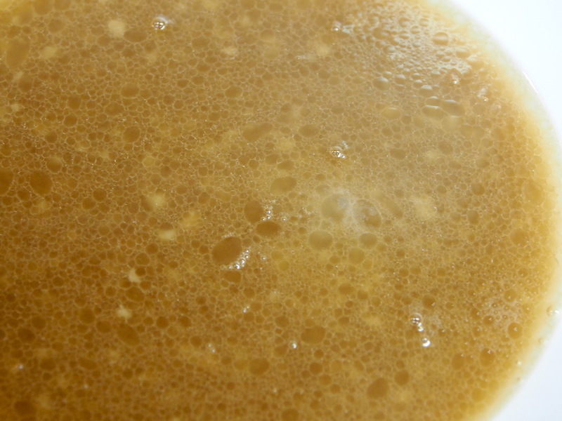 麺が茹で上がる数分前に湯煎していたスープを取り出します。