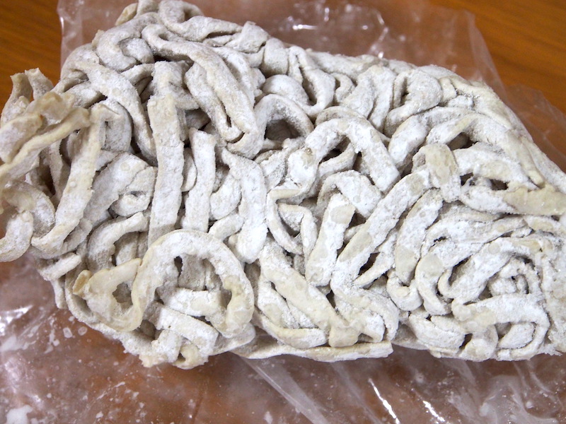 野菜が茹で上がったら、その鍋で麺を茹でます。