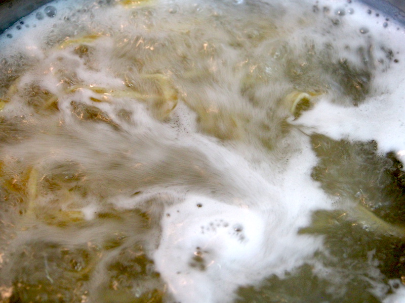 そのまま沸騰しているお湯に入れてこのくらいの火加減を維持します。