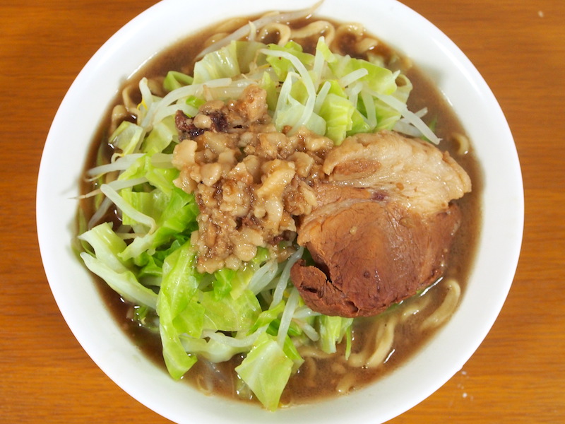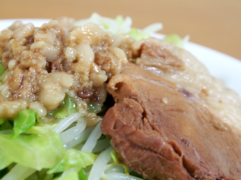 アブラが多いので特に野菜が楽しめます。逆に「アブラのうまさを純粋に楽しみたい」というハードボイルドな方は「野菜一切なし」というのもありかもしれません。