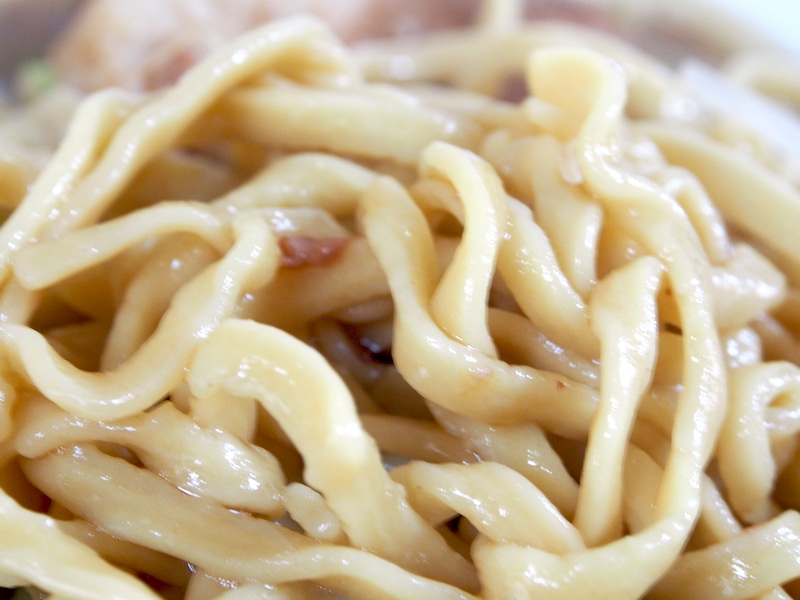 スープに溶け込んでいる脂は少なめ。でも一般的には多め。比較的あっさりと二郎系を行きたい時に良いのではないでしょうか。